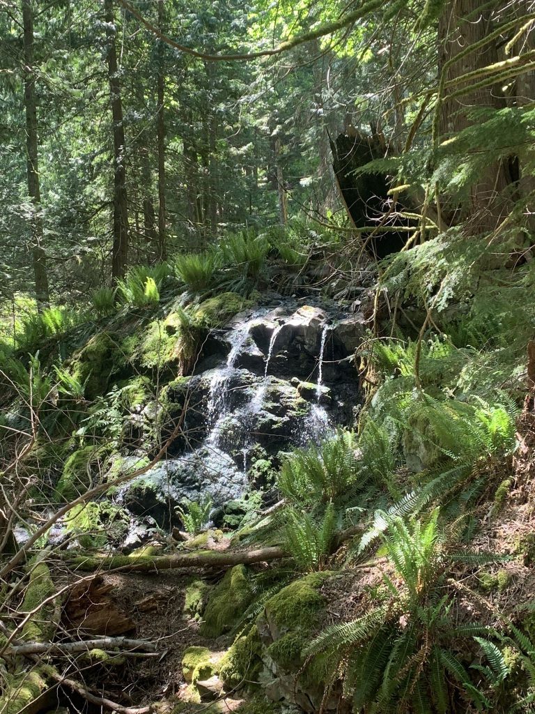 There is a moderately strenuous 10 km (approximately 6 hours) day hike to Mount Artaban through the Georgia Strait lowland forest with an elevation gain of 610 metres.
